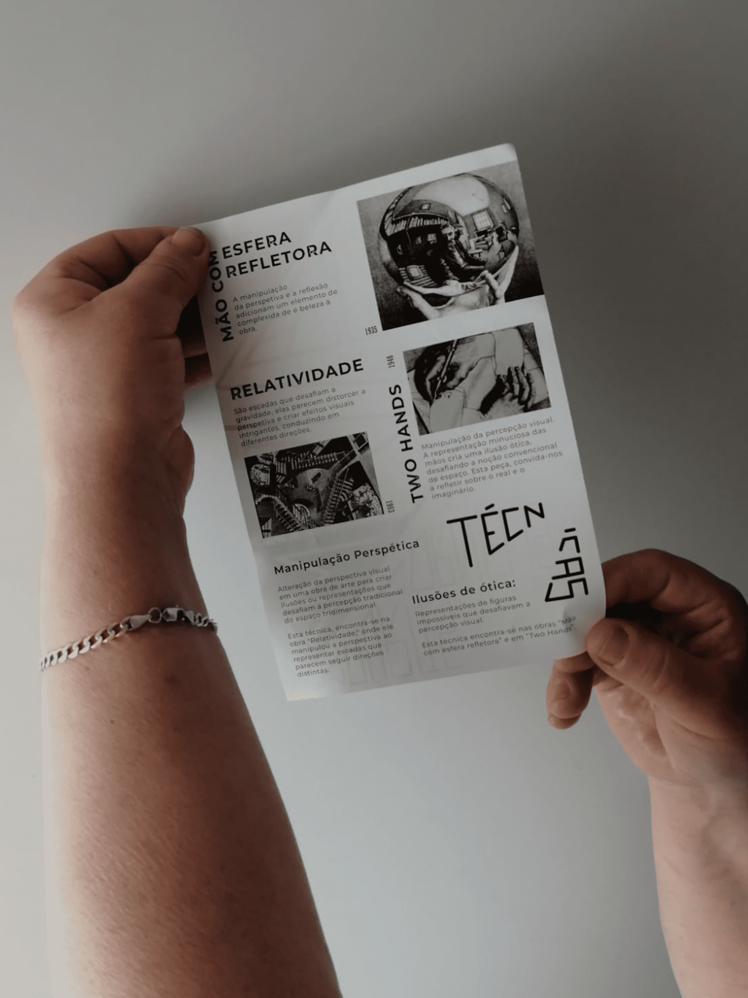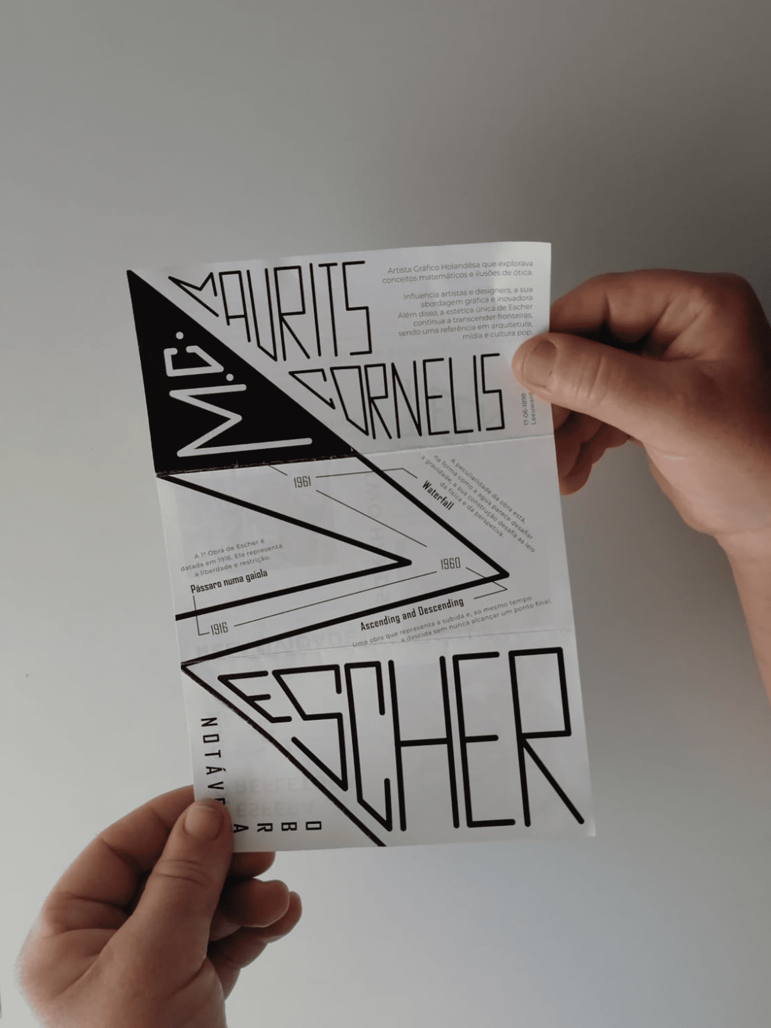 Ao criar um panfleto sobre o artista Escher, mergulhei na emocionante tarefa de capturar seu gênio artístico. A incorporação de elementos de ilusão de ótica enriqueceu o design, proporcionando uma experiência visual dinâmica e cativante ao público.